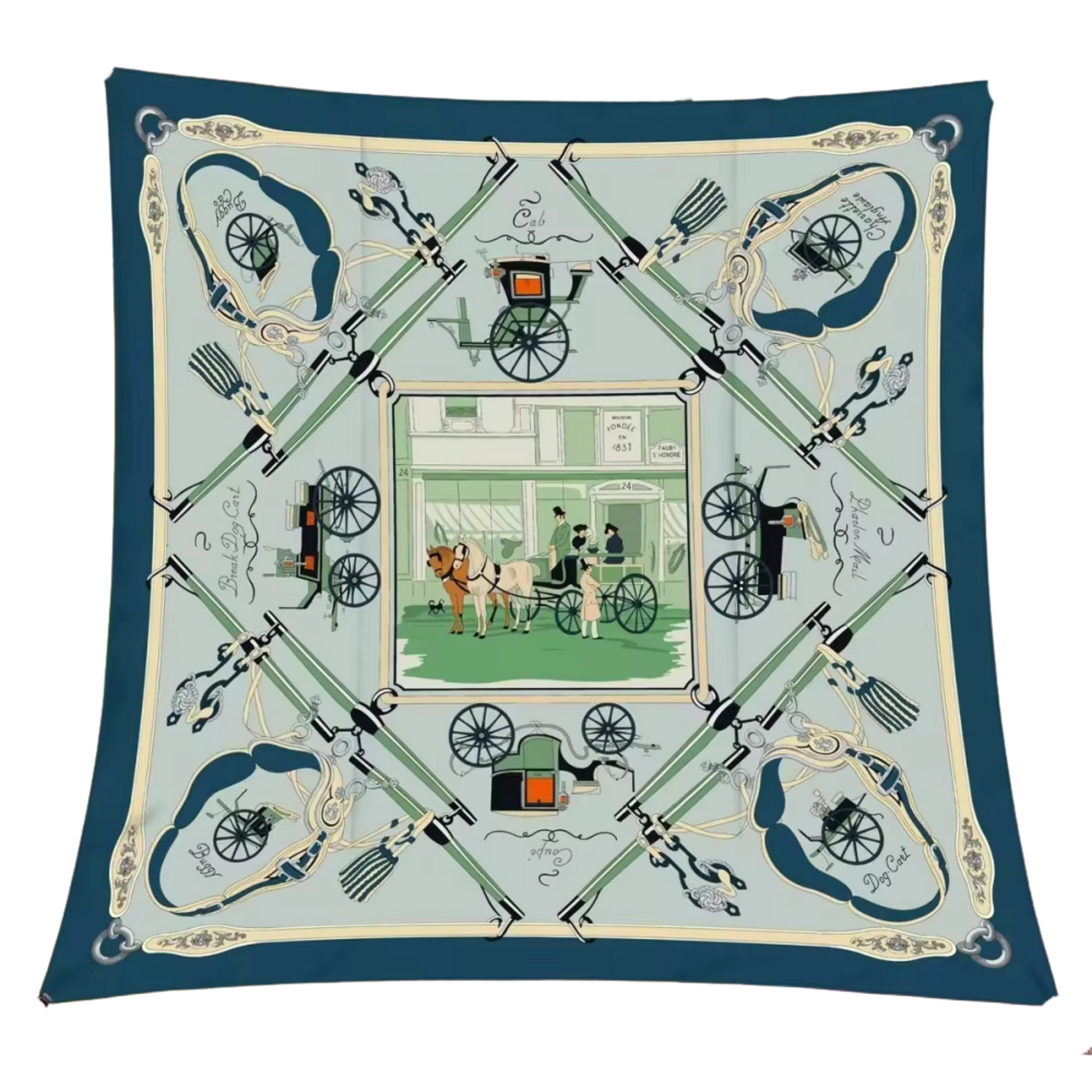 New for 2026 this luxurious 100% silk scarf features carriages, saddles, and leader bars in three colorways.